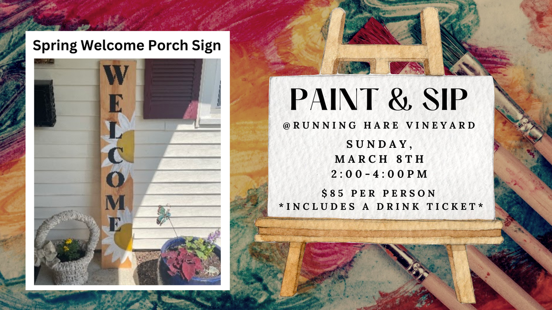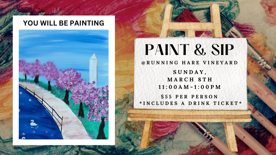 Sip and Paint at the Vineyard on Sunday, March 8th from 11:00am-1:00pm