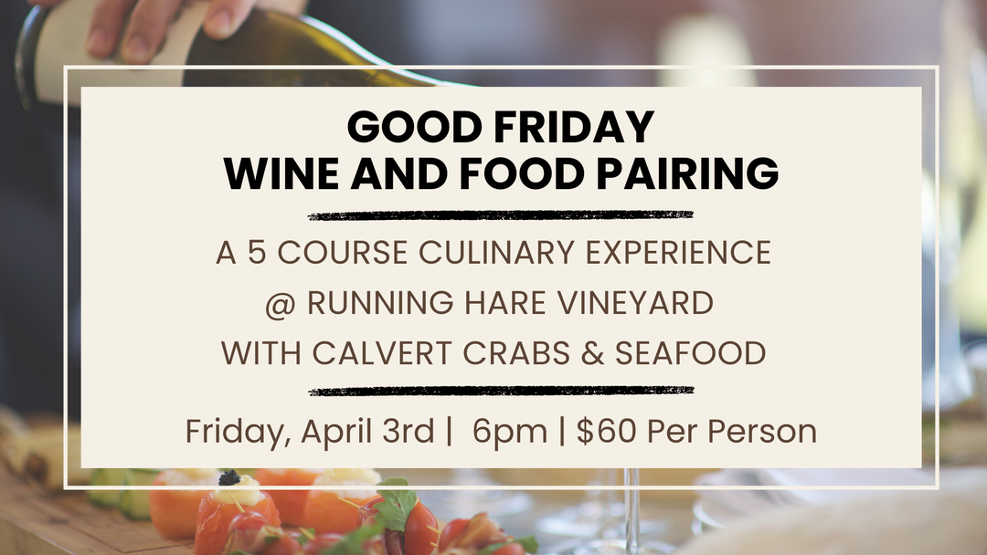 Good Friday Wine and Food Pairing on Friday, April 3rd from 6:00 - 8:00pm!
